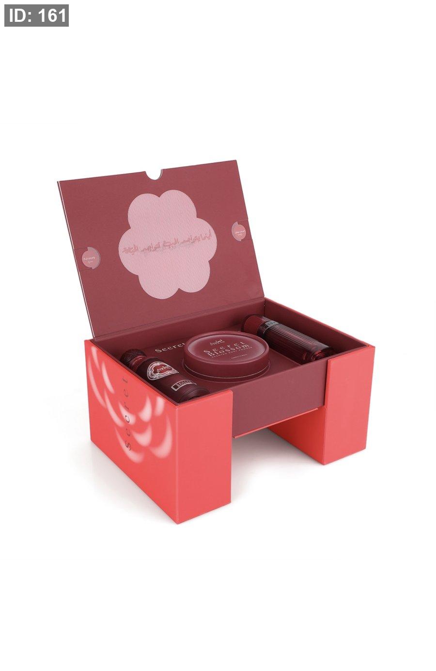 ٢- بودرة الجسم المعطرة: بحجم 10 غرام، تمنح البشرة ملمساً حريرياً ورائحة مسكية ناعمة.