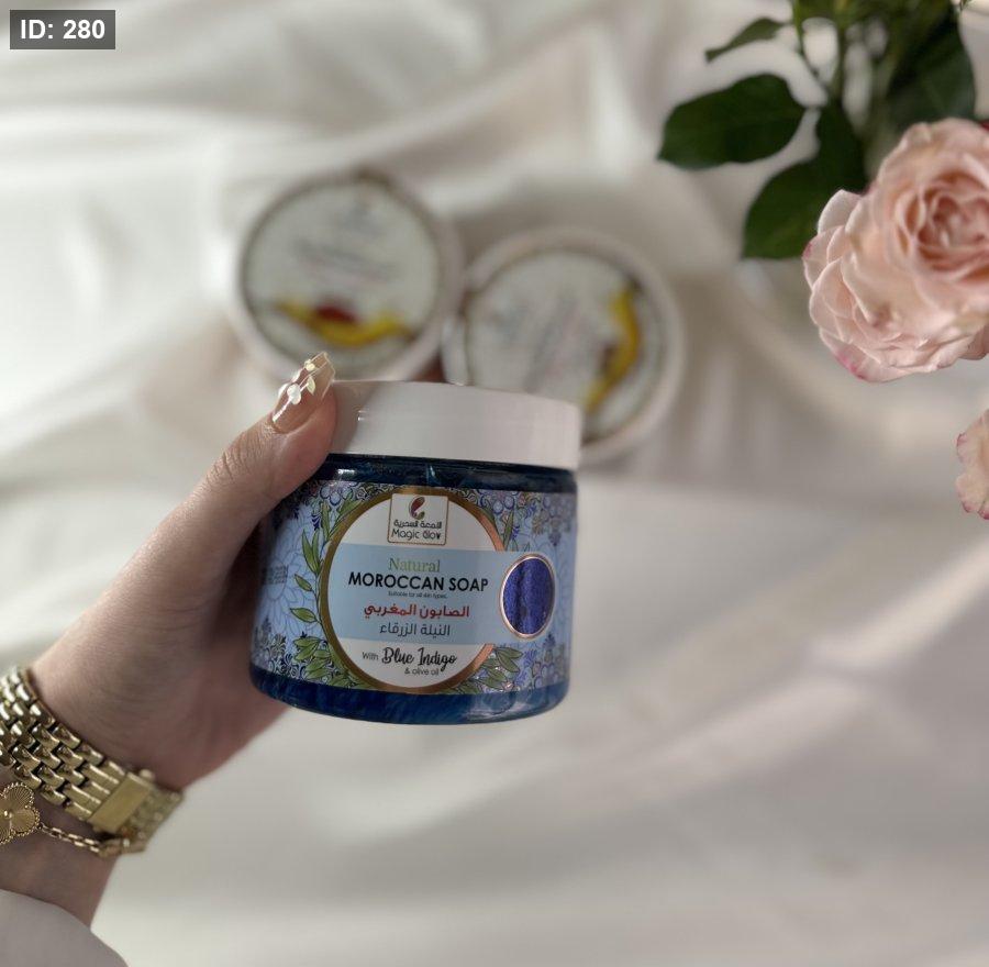 الصابون المغربي بالنيلة الزرقا غير انو ح ينضف الجسم ويشيل الجلد الميت ، ح يساعد ع توحيد لون البشرة ، ويشيل التصبغات والآثار الناتجة عن حروق الشمس ، والتخلص من الكلف والبقع الداكنة 💫