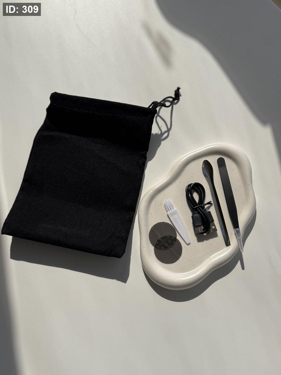 *موجود مع المبخرة قطعة شبك اضافية للبخور، ملقط وفرشاية للتنضيف ، سلك شاحن ، كيس مخمل مشان ازا حابين تاخدوها معكم لأي مكان
